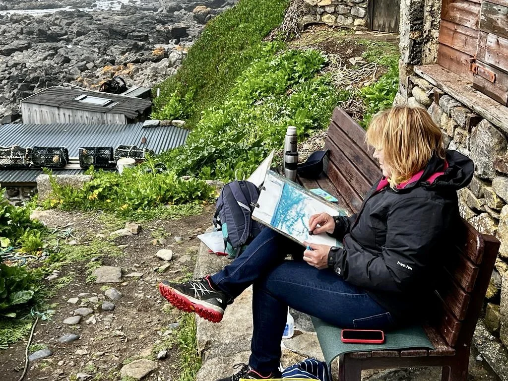 She often uses gold leaf as a background to intimate pen and ink drawings of wildlife and local buildings. She is well known for her original thumbprint paintings – these are made up of several small images that connect to each other in subject and space to form one larger picture. Originally trained to teach art, she has worked in further education as a teacher and senior manager. More recently, for two consecutive years her paintings were selected for the Royal Institute of Painters in Water colours exhibition at the Mall Galleries, London. Her studio is at her home in Woking.