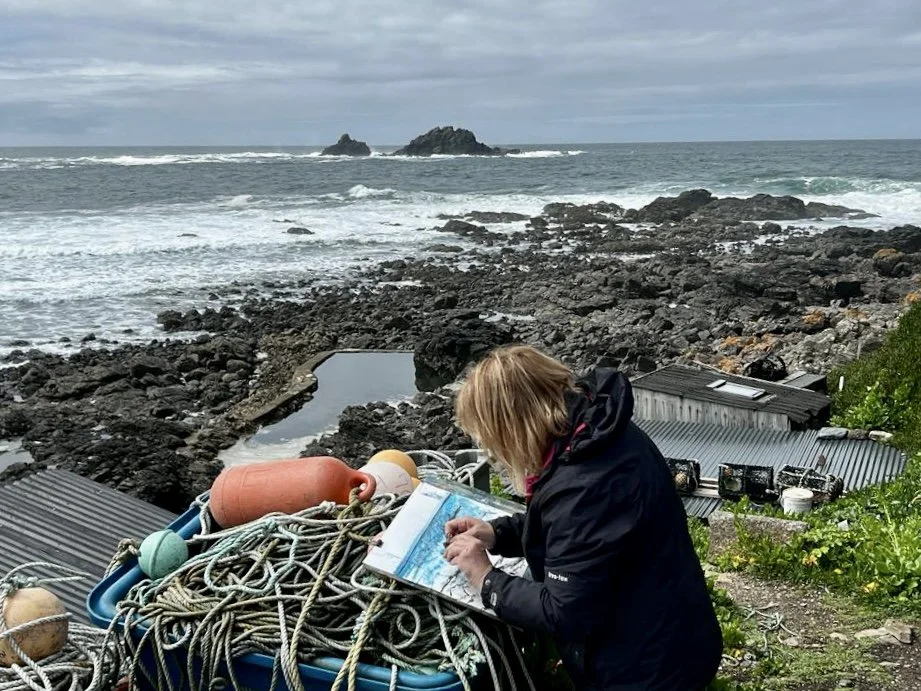 Louise uses a range of approaches to image making, taking the relationship between sea and land as a starting point. She uses lyrical, free style paint marks to create real and imagined views with cracked and broken forms She has a passion for colour and texture and most recently she has worked on canvas boards to take observation and experience into her remembered forms. Her strong, colour drenched images have distinct surreal qualities yet link to realism and nature.